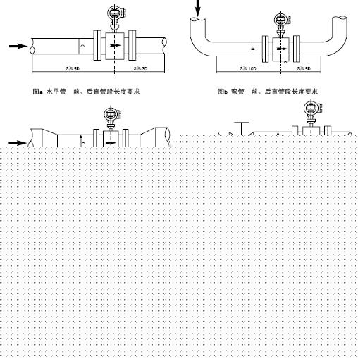 流量計(jì)對(duì)安裝在上、下游工藝管有一定的要求,否則影響測(cè)量精度。