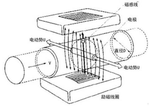 B-磁通密度;D-測量管內(nèi)徑;V-流量信號(電動勢);U-液體平均軸向流速